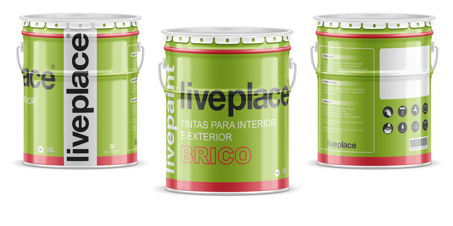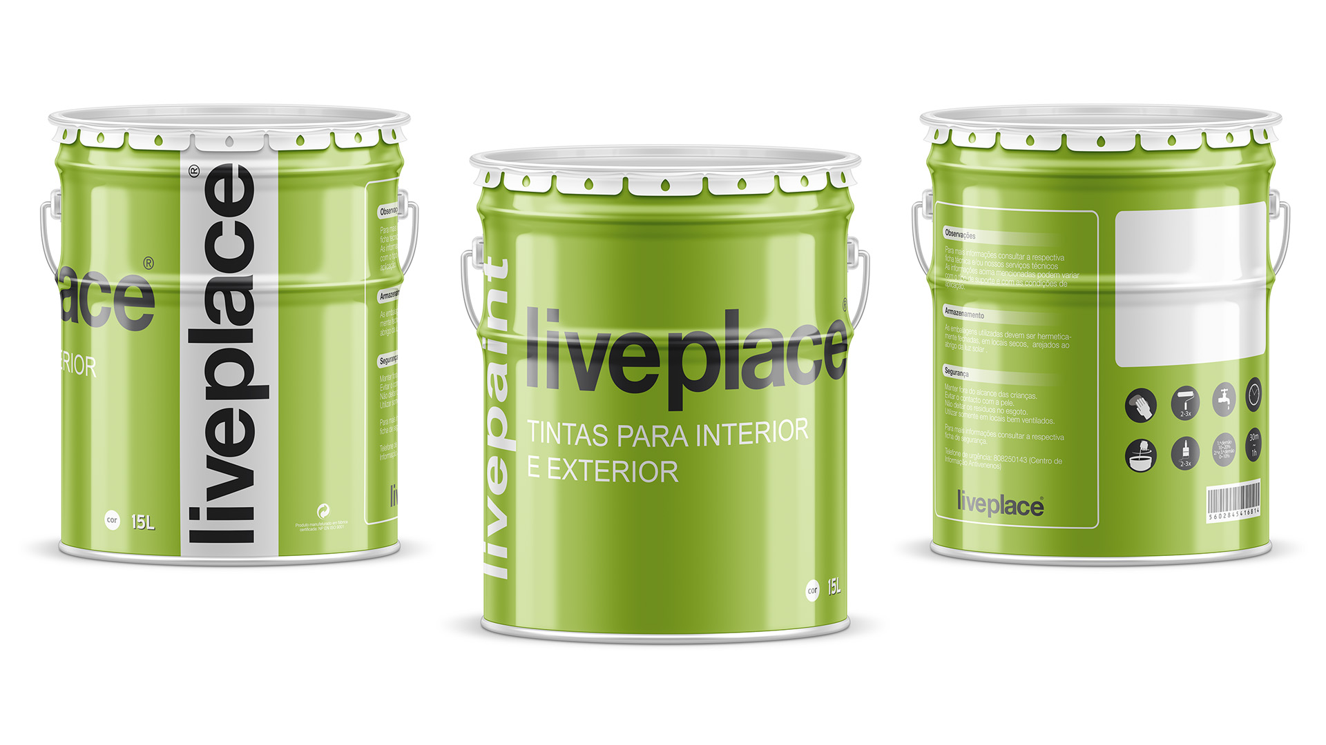 Desenvolvimento e maquetização de duas linhas de baldes de tinta da marca Liveplace.