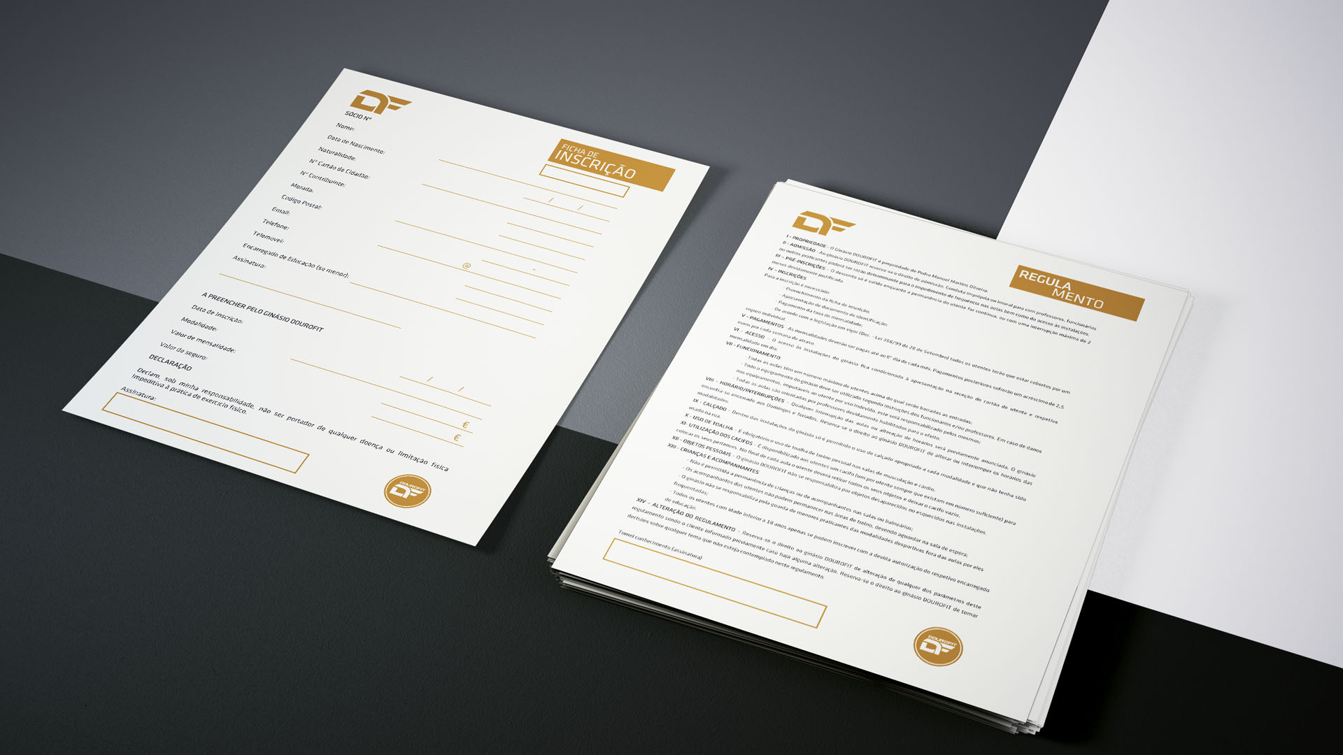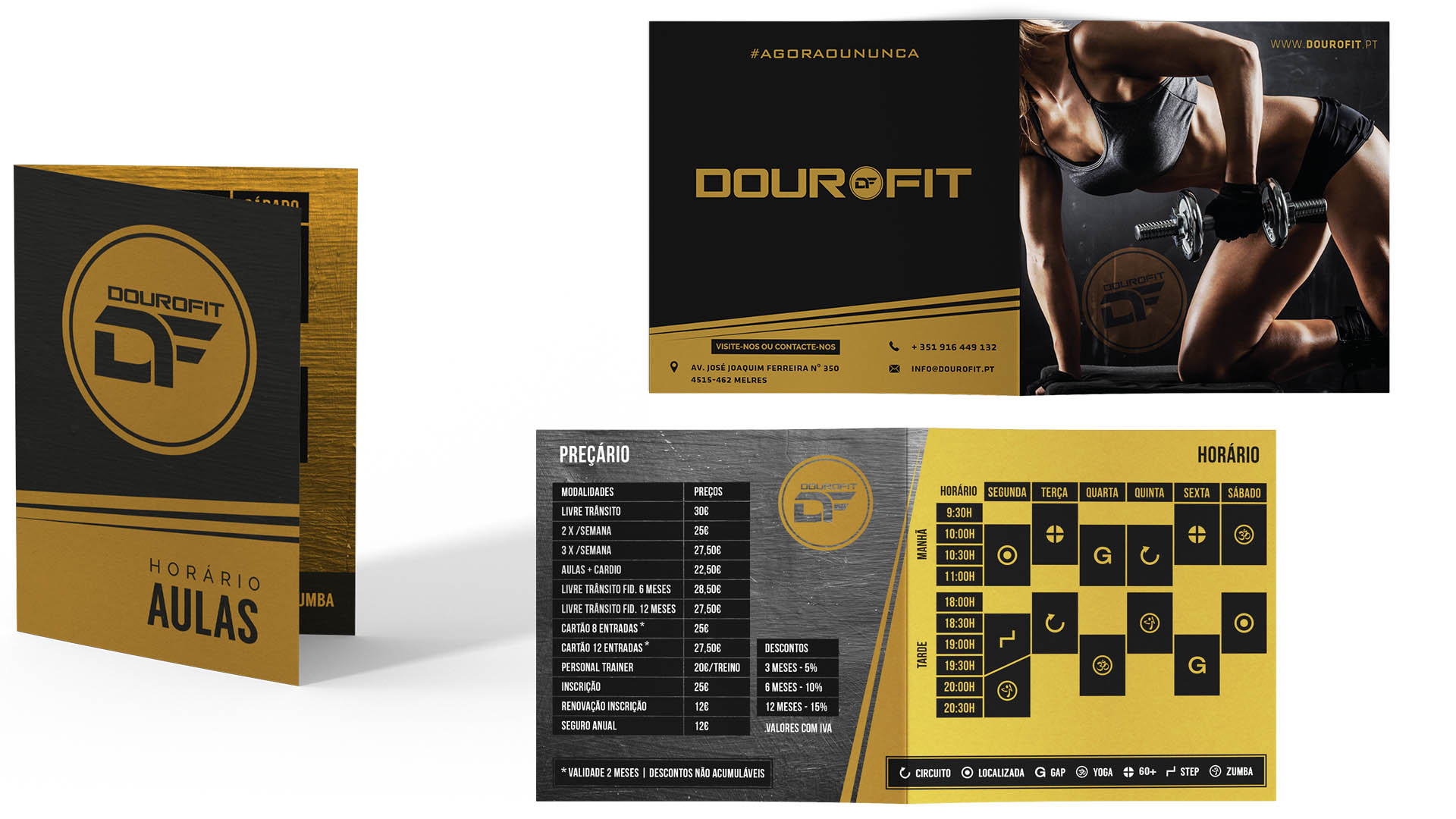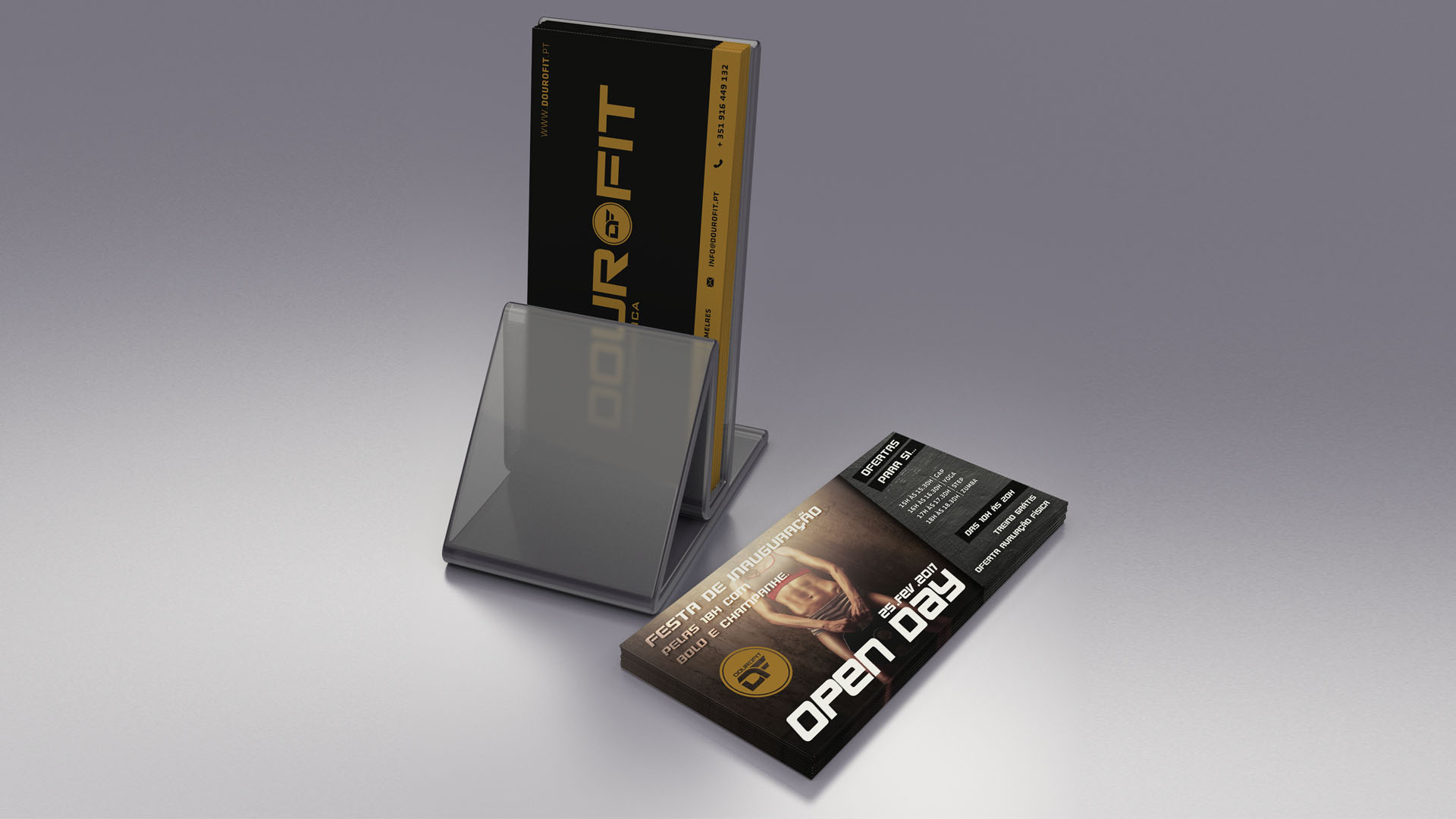 Desenvolvimento e produção de todos os suportes publicitários do ginásio Dourofit.